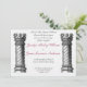 Um bonito convite de casamento com duas colunas brancas e pretas nos lados. O texto para sua informação de casamento vai para o centro.