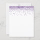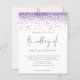 O Elegante Glitter Roxo Confetti Reproduz Convite De Casamento. Um alternativo de 4,5 pol x 5,6 pol com preço inferior. Disponível em um STOCK DE CARTÃO SEMI GLOSS 110 lb, que é a opção padrão (recomendada para convites), OU um STOCK DE PAPEL THINNER SATIN FINISH 80 lb (ideal para gabinetes). Os envelopes são um extra opcional e são ligeiramente maiores que o tamanho da placa. Uma tipografia na moda em preto para o título principal de Casamento de complementar o resto do texto que você pode facilmente personalizar. Uma borda brilhante do estilo de configuração de falso roxo passa pelo topo em cada lado.