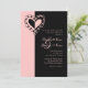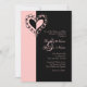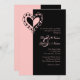 Este clássico convite de casamento mostra rosas claro e cores negras com uma imagem cardíaca caprichosa que lhe dá um toque romântico para a ocasião especial. Excelente para casamentos utilizando um tema e cores clássicos rosa e preto. Também pode ser usado para chás de panela e chás de casamento personalizando o texto para dizer exatamente o que você precisa. Procure por RSVP no meu compro!