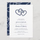 Os convites românticos para casamentos de chic costeiros apresentam uma paleta clássica de cor azul e branca-marinho, com dois corações entrelaçados formados com corda náutica com nós. Personalize com seus detalhes do dia de casamento em uma combinação chic de serif e sans serif. Perfeito para casamentos náuticos, de verão ou de praia.