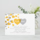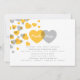 Um design de convite ousado e moderno para um casal não tradicional! O convite é enfeitado com um padrão de corações em amarelo-sol brilhante e cinzas. A parte de trás inclui espaço para texto adicional ou um endereço de site de casamento.