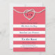 Uma corda branca amarrada num coração decora este convite de casamento num fundo de coral, fazer-o perfeito para o casamento náutico ou à beira-mar. Role para baixo para ver o resto da coleção de casamento e, se forem necessários itens adicionais, entre em contato conosco em prettyfancyinvites@gmail.com com o seu pedido.