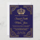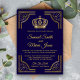 Encontrem seus hóspedes com este tema real convite de casamento com uma elegante fronteira de ornamentado de ouro e uma bela coroa contra um fundo azul. Basta adicionar os detalhes do seu evento neste modelo fácil de usar para torná-lo um convite de tipo único. Sacudir a placa para revelar um belo padrão na parte traseira da placa. Este convite é totalmente personalizável. Todos os textos são editáveis e a cor de fundo pode ser facilmente alterada para quais melhores ajustados você pode fazer.