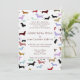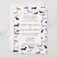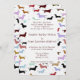 Um convite de casamento maravilhoso para o amante Dachshund! Apresenta muitos cães dachshund coloridos por toda a fronteira do convite. Seu convite para o casamento vai para o centro. Excelente para o casal amoroso!
