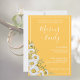Bonito convite casual design apresenta cores brancas margaridas canto sobre fundo amarelo daffodil com blocos de texto personalizáveis brancos em fontes modernas
