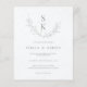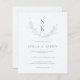 Personalize facilmente este convite para casamento elegante e moderno, com um esboço sofisticado de folhas verdes. O fundo é um padrão rústico de cinzas que você pode esconder e mudar para a cor sólida do seu gosto de se adequar às suas cores de casamento.