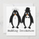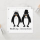 Design do convite de casamento. Personalize este convite de casamento com seus detalhes de casamento e, em seguida, envie-o para você ou faça o download instantâneo do seu dispositivo móvel para que você envie para seu convidado através do serviço de mensagens, economizando tempo e dinheiro em custos de postagem. Convite de casamento personalizado para design de pinguim que você pode ter impresso ou baixado instantaneamente