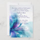 Bonito convite de casamento para ilustração floral azul e roxo de abstrato. O convite inverte-se para um padrão floral coordenado de abstrato. Suas próprias informações pessoais de casamento/evento podem ser inseridas facilmente seguindo as instruções de etiquetagem de modelo usando as ferramentas de design do Zazzle.