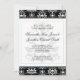 Damasco preto e branco legante com um convite de casamento de sotaque vermelho.