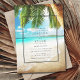 Águas turquesas, areia branca e design de casamento de palmeiras para seu destino tropical ou casamento de praia. Este convite para o casamento na praia é feito numa mistura moderna de fontes e impresso em tinta de cinza escura. Personalize o convite com os detalhes do seu casamento.