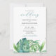Estes convites de casamento de destino tropical apresentam uma coloração d'água de baixo nível das folhas de palma da monstera. A palavra "Casamento" é definida na tipografia da moda em verde esmeralda. Use os campos modelo para adicionar suas informações personalizadas. Perfeito para casamentos no México, Ilha do Havaí, Flórida ou qualquer local de praia tropical. Para ver todo o tema do casamento visite www.zazzle.com/dotellabelle Arte e design originais por Victoria Grigaliunas