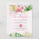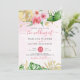 Rosa tropical e pêssego com convite floral de casamentos de cor d'água dourada, com um fundo texturizado de rosa claro. Personalize nomes, datas e informações.
