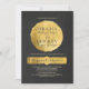 Convite de casamento de cinza de quadro superior com design de folha de ouro com estilo tipográfico moderno. Note que este convite de casamento não usa nenhuma folha de ouro física ou confete de ouro - ele será impresso da forma que você vê na tela do seu computador.