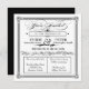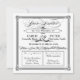 Este convite de casamento quadrado preto-e-branco tem uma sensação vintage, antiquada, com design de cartas antiquado, incluindo elementos elaborados de script, uma faixa decorativa, estrelas e um amante suave. O convite para o rico é inspirado por posters de design e na moda. O texto diz: "Você é Convidado para o casamento de [nome personalizável] & [nome personalizável] [data personalizável] [hora personalizável]. Por favor, junte-se a nós para uma Celebração Inesquecível". Personalize ainda mais o convite com a cerimônia de casamento e as informações e endereços de recepção, cada um na sua própria caixa com fronteiras pontilhadas.