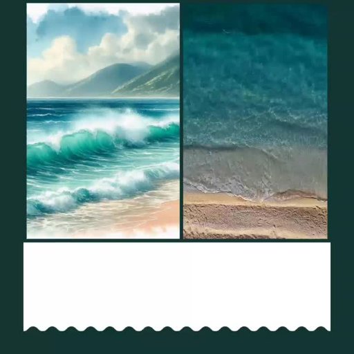 Um convite de casamento sobre o tema praia e oceano com uma margem arenosa com ondas de azul e peixe estrelado no oceano para sotaque Personalize com suas informações de destino de casamento, conforme desejado.