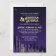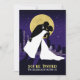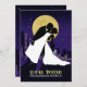 Um convite gráfico único que apresenta a silhueta de uma noiva e noiva com o horizonte da cidade e as estrelas ao fundo. Saia com este convite ilustrativo de casamento. A informação de casamento aparece no verso do convite, enquanto o nome e a data da noiva e do noivo são apresentados na frente.