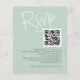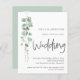 Um valor para o alternativo do ORÇAMENTO em tamanho menor de 4,5 x 5,6" de semirbrilho de 110 lbs, que é de espessura semelhante a um cartão postal (no entanto, não é adequado para uso como cartão postal). POR FAVOR, OBSERVE QUE EXISTE UM convite por folha de orçamento Convite para Casamento de Eucalyptus QR Moderno. Adicione seu código QR ao seu site de casamento no verso faz com que esta seja uma opção conveniente para seus convidados para RSVP e veja todos os detalhes sem a necessidade de RSVP separado e cartões de detalhes. Estilo botânico minimalista, com uma tiografia moderna e divertida para o Casamento e o mesmo nas costas para o Rsvp e o resto do texto que você pode personalizar facilmente. Um galho elegante de folhas de aquarela eucalipto corre pelo lado esquerdo.