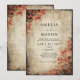 Este elegante Convite para Casamentos vintage de Rosas vermelhas é o toque perfeito para o seu casamento vintage, medieval ou de conto de fadas. Este convite tem um estilo suave e elegante com um quadro floral feminino. Ilustrações florais deliciosas adicionam um toque de charme brilhante e inspirado na natureza. O layout é limpo e organizado, usando um alinhamento centralizado e espaçamento nítido para criar uma aparência refinada. No geral, a design parece romântica e única.