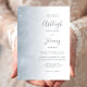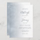 Este elegante convite de casamento moderno apresenta uma imagem empoeirada de forma azul de forma suave e brilhos sutis. O texto personalizável combina manuscritos azuis empoeirados, copperplate e fontes itálicas. O verso apresenta um design correspondente.