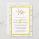 Este simples convite de casamento de praia mostra uma madeira de madeira branca.. que parece um fundo emprestado na cor do seu casamento. O ponto focal do convite é um par de estrelas-do-mar elegantes. Cores personalizadas disponíveis mediante pedido.