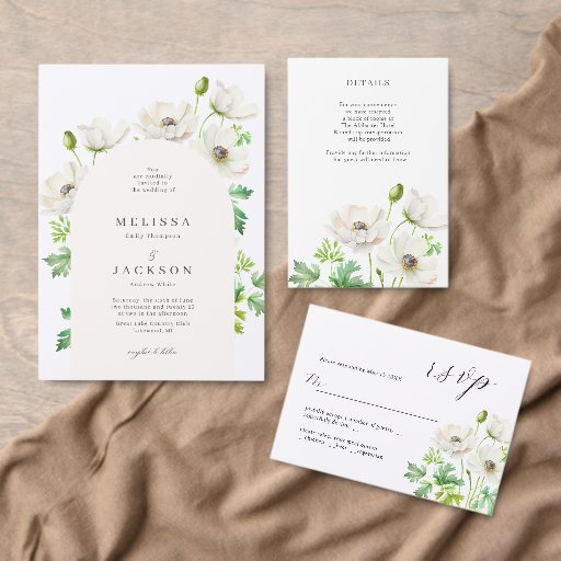 Convite para Casamento de Flor Anêmona Branca
