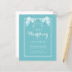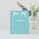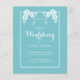 Convite de casamento azul com texto branco e sotaques florais no topo da borda fina. As cores e o texto são completamente editáveis on-line com alguns cliques, mas se você precisar de ajuda, entre em contato com o designer em ArtByLiz@gmx.com e a placa será personalizada para você sem custo extra.