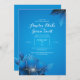 Flor azul elegante com contorno prateado. Este convite de casamento moderno e elegante é uma maneira excelente de convidar seus convidados. Este conjunto de design também está disponível em lembranças, decorações e artigos de papelaria para encerrar seu evento especial. Simplesmente personalize suas informações de evento nesta modelo para criar um convite único.