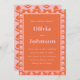 Estes convites para o casamento têm uma cor laranja arrojada, aliada a uma rosa claro, criando uma estética vibrante e lúdica. A borda retrô adiciona um toque de nostalgia e adiciona um elemento único e divertido ao design. Os convites vêm em várias opções de cores, dando a você a flexibilidade de criar uma aparência coesa para o seu dia especial. A papelaria coordenadora foi projetada para misturar e combinar, permitindo que você crie uma busca personalizada e coordenada pelo seu casamento.