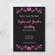 Faça uma declaração com este moderno e simples convite para o casamento, apresentando uma bela fronteira superior e inferior de flores e vinhas cor-de-rosa. O elegante fundo preto adiciona um toque de sofisticação, enquanto o texto branco e rosa suave fornece um pop de cor e um toque romântico. O texto simples, mas moderno, cria um olhar limpo e elegante que certamente impressionará seus convidados. Quer você esteja planejando uma cerimônia íntima ou uma grande celebração, este convite dará o tom para seu dia especial. Peça agora e personalize-o para torná-lo verdadeiramente único ao seu estilo de casamento.