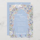 Belo convite para o casamento de azul e flor silvestre com detalhes no verso