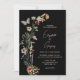 Boho Wildflower Wedding em preto Convite com lindas flores silvestres de aquarela em fundo preto escuro e com letras de guião brancas com lindas borboletas. Elegante, simples e mínimo design perfeito para um dia de casamento do tema prado ou jardim.