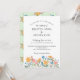 O Convite para Casamento de Flor Selvagem de Verão inspira-se em dias quentes de Verão no campo. O design apresenta flores coloridas de flor silvestre, combinadas com um belo roteiro e letra serif. Dê vida ao seu evento com a combinação, salve as datas, os itens do dia do casamento e muito mais.
