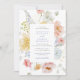 Este convite de casamento para flores de aquarelas suaves apresenta delicados florins pastéis, perfeitos para um casamento romântico, vintage ou com temas de jardim. Oferece um toque personalizado e elegante para sua celebração. O texto personalizável e as cores fazem dele um eterno e uma escolha artística para o seu dia especial.