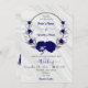 elegante luxo flores azuis reais com algumas cinzas prateadas folhas coroa coroa coroa botânica contra o convite para casamento de fundo de mármore Os detalhes de brilho são simulados