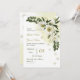 flores brancas e douradas com oliveiras verdes deixam convite de casamento botânico. Os detalhes de brilho são simulados