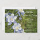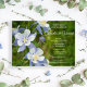 Convide convidados para a cerimônia de casamento e recepção do tema do exterior ou da floresta que vem com o Convite de Casamento das Flores Azuis Columbinas. Este elegante convite de casamento de flores personalizado apresenta uma fotografia floral pintada digitalmente de flores de columbine azul da floresta do Colorado, com um fundo florestal verde.