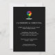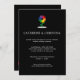 Este convite temático do Orgulho foi projetado para casais que apreciam uma mistura de diversão e refinamento. Combina charme lúdico com elegância madura, mostrando uma deliciosa flor do arco-íris e fontes de serifa eterno contra um fundo escuro chico. Ele dá um primeiro vislumbre para seus convidados da próxima celebração do amor e diversidade.