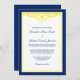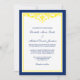 Convites de casamento elegantes, azuis e amarelos. Apresentando um marinho azul de pré-disquete moderno com um amarelinho. Personalize facilmente o seu casamento. Farinha por © Mujka Design