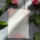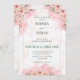 Este convite romântico de casamento apresenta flores cor-de-rosa macio, sofisticados sotaques de mármore em ouro, e uma fonte elegante em fundo branco-champanhe. Uma bela escolha para primavera ou casamentos de verão, ela dá um tom eterno e gracioso para sua celebração.