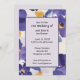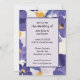 Flores roxas velhas fazem um convite para casamento moderno brilhante e alegre.