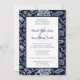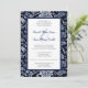 Uma celebração do amor! Um convite floral de casamento com um padrão de flores silvestres no índio profundo azul. As flores silvestres do campo criam uma deliciosa fronteira, sua beleza natural enquadrando o texto, o que adiciona um toque de sofisticação à design. O resultado é um convite que equilibra perfeitamente o encanto rústico do campo com um toque de elegância eterno. Uma fonte decorativa de script é usada para os nomes dos casais com uma marca e entre eles.