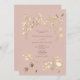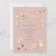 Ponha o tom para uma celebração romântica com este elegante convite de casamento rosa. Projetado com delicadas flores silvestres de cor dourada e folhagem neutra num fundo de rosa macio e poeirento, ele combina encanto rústico com elegância floral moderna. Detalhes da caligrafia graciosa completam este eterno em busca de casamentos inspirados em boho ou vintage.