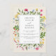 Celebre a sua história de amor com este Convite Moderno para Casamento de Flores Selvagens, com um quadro retangular limpo rodeado por um buquê de aquarela alegre de flores silvestres em vermelho, amarelo, azul e rosa. O fundo do marfim e a tipografia serif clássica oferecem elegância ao eterno, enquanto a fronteira floral traz um novo e moderno charme botânico. Ideal para casamentos de primavera e verão, festas de jardim ou qualquer evento inspirado na natureza. Totalmente editável para se adequar aos seus detalhes e estilo de casamento.
