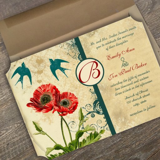 Vintage Red Poppy Floral Casamento. Perfeito para seu tema de casamento do celeiro ou jardim.