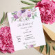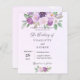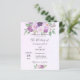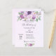 Um fundo colorido violeta e lavanda. Decorado com flores violetas e púrpuras aquáticas. Personalize e adicione seus nomes e detalhes da festa. 1 folha = 1 convite impresso de borda a borda.