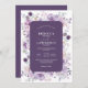 Gracioso e eterno, este Convite de Casamento para Flores Elegantes, Roxas e Violetas, captura o romance do seu dia especial com rica beleza floral e encanto refinado. Com um arranjo exuberante de florescências roxas, violetas e lilás, delicadamente acentuado com verde macio, esta design parece um jardim florescente no crepúsculo. A paleta de cores profunda, sonhadora, se emparelha sem esforço com fontes clássicas de serif e scripts fluentes, criando um equilíbrio sofisticado de romance e estilo. Impresso em um estoque de cartolina de qualidade superior, este convite é perfeito para casais que buscam um design floral polido e elegante.