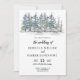 Cartão de convite para o casamento florestal com pinheiros de cor aquática deslumbrantes. Localizar itens correspondentes na nossa coleção de casamento florestal!