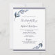 Um Marinho Elegante e um Convite para Casamento de Folha Floral Branca desenhado em fundo branco com bordas de marinho e floral de cor aquosa fluente suave. O texto inclui os nomes da noiva e do noivo, a data de casamento, o local e os detalhes de recepção. O inverso é um fundo clássico colorido do Marinho correspondente. Para personalizar, basta substituir o texto de exemplo usando nosso modelo fácil. Certifique-se de ver toda a Coleção de Casamentos de Folhas Florais e Marinhos Brancas para papelaria correspondente.