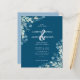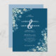 Convite para casamento moderno. Apresentando flores rústicas e minúsculas flores azuis sobre fundo azul Egeu. Fácil de personalizar com suas informações exclusivas.