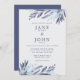 Este Convite de Casamento de Folhagem de Cinza Azul traz sua família e amigos para celebrar seu dia especial. Folhas de cinza azul no canto superior direito e inferior esquerdo adiciona um toque de romance e elegância. Os nomes da noiva e do noivo estão em letras negrito. Seu texto de informações de casamento está no estilo clássico. Personalize-o com seus nomes, detalhes de casamento e qualquer outra informação adicional. Para mais personalização, entre em contato comigo em kbasandra@gmail.com.